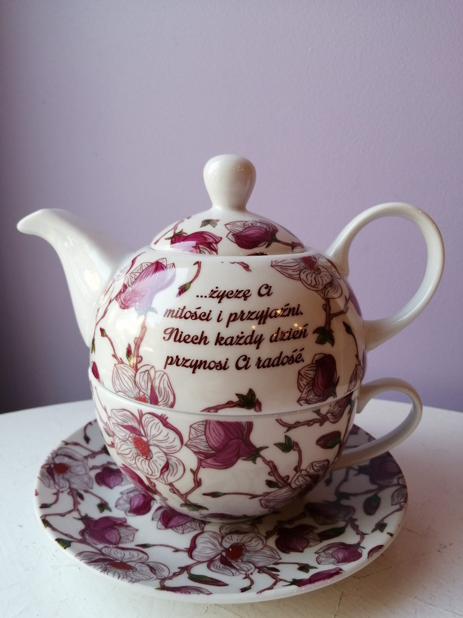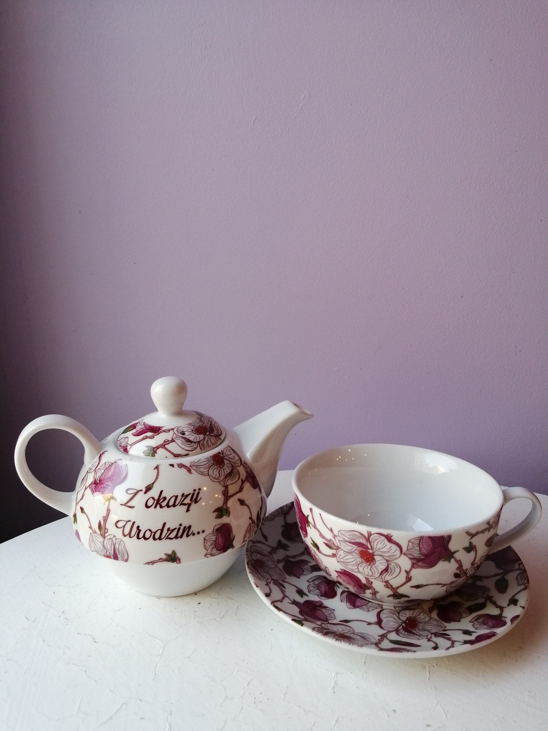 Dzbanek z filiżanką i spodkiem z okazji urodzin