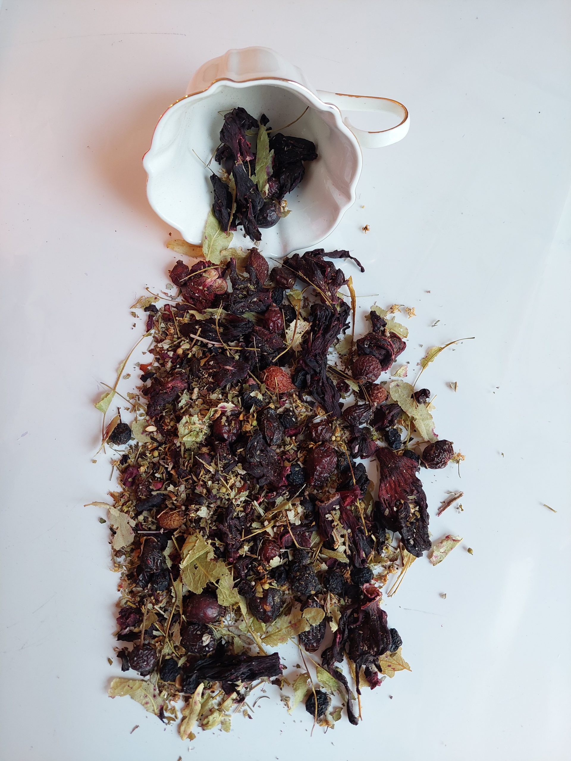Składniki: owoc dzikiej róży(40%) hibiskus, aronia, lipa, liść poziomki i jeżyny, burak, aromat